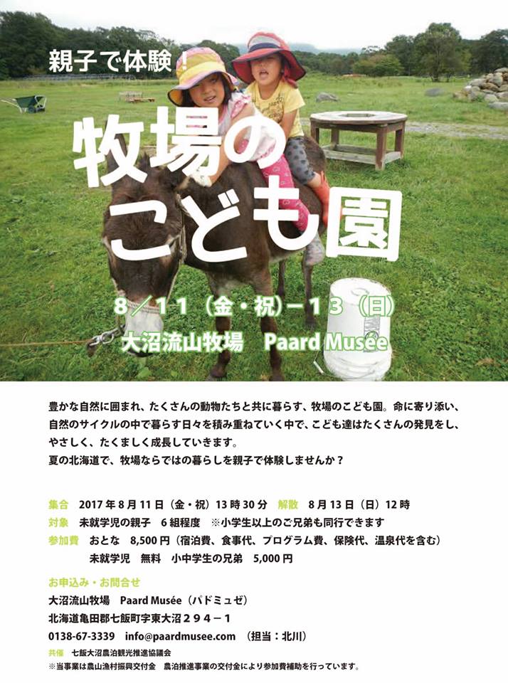 親子で体験!牧場のこども園 募集中♪【Paard Musée 大沼流山牧場】