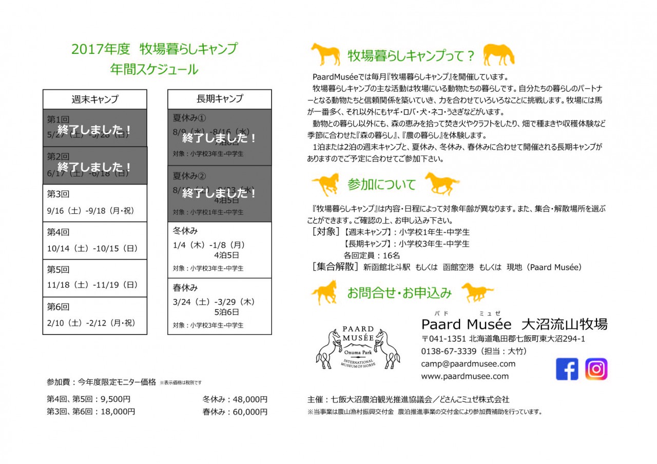 牧場暮らしキャンプ参加者募集中【Paard Musée 大沼流山牧場】