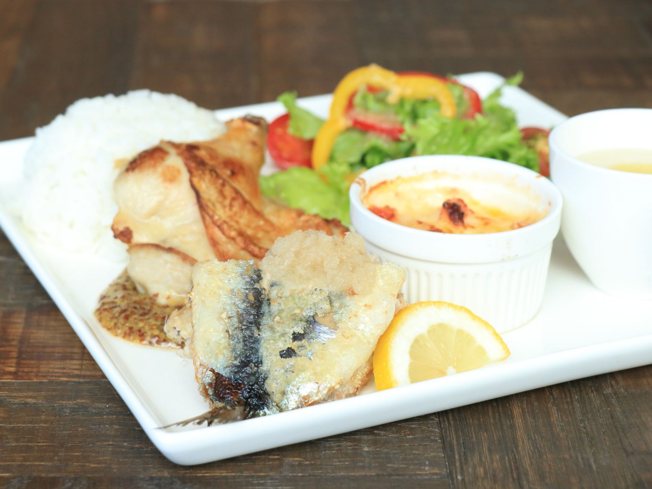 本日のメニューは、真鱈のブランダードグラタン仕立てとジャガイモの冷たいスープ