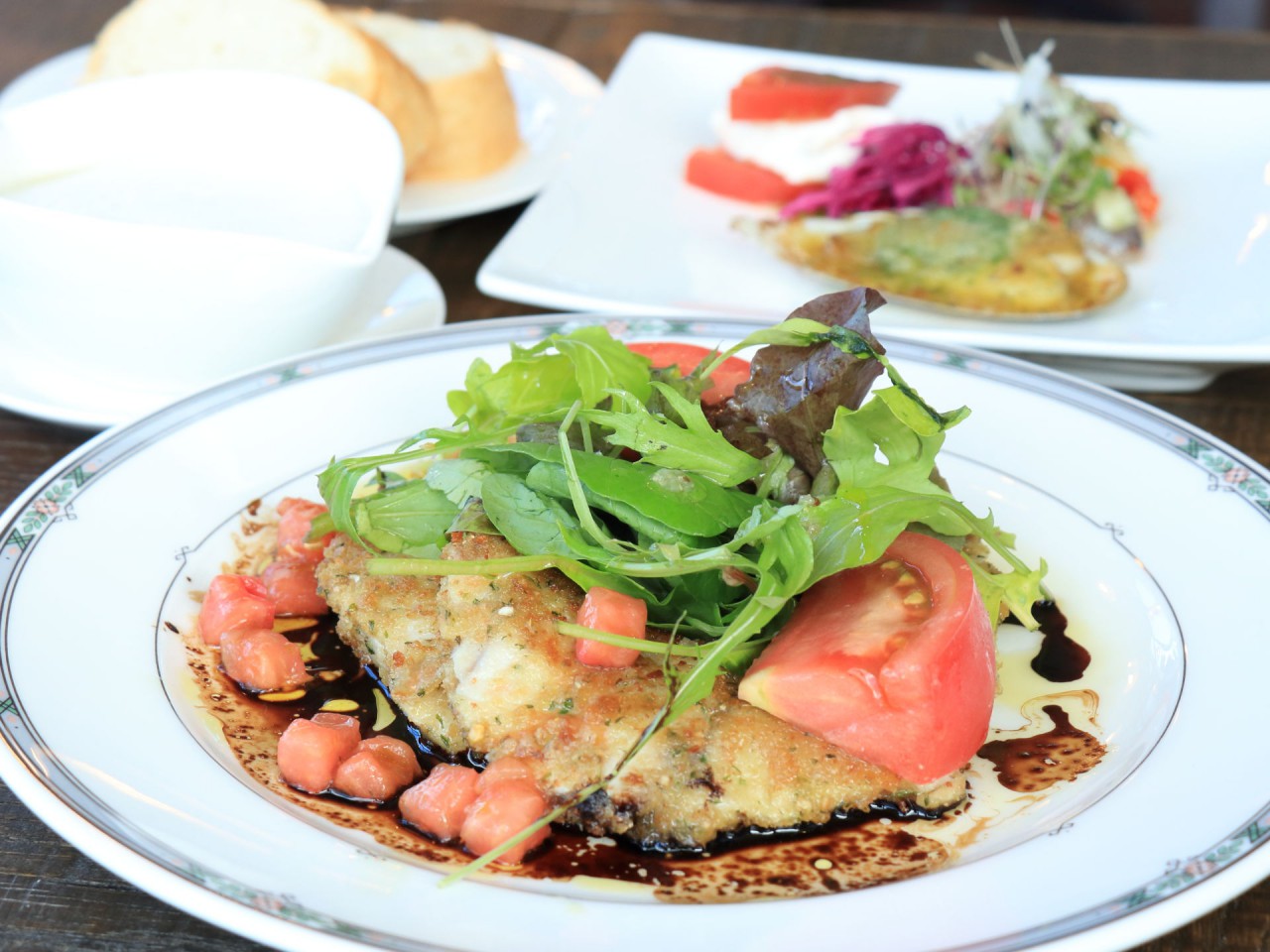 函館山ブリのカツレツサラダ仕立て(我が家は魚料理をチョイス)