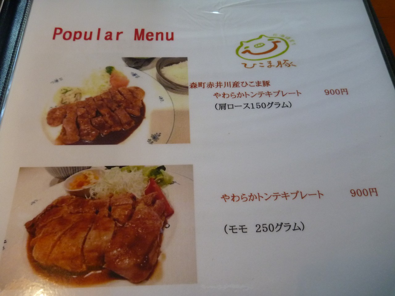 最近のおススメは、2017年から始めた「ひこま豚のやわらかトンテキプレート」900円。