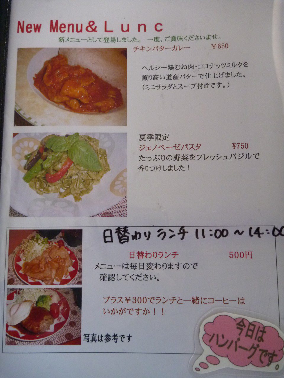 お店を始めた頃から守り続けているワンコインランチもおススメです。500円でしっかりと食べられますよ。ありがたい。