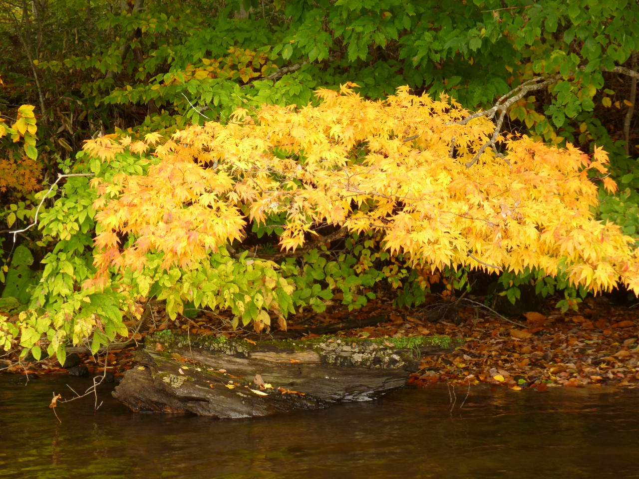 駒ケ岳のふもとの紅葉も、水上から見るとまたひと味違う美しさです。