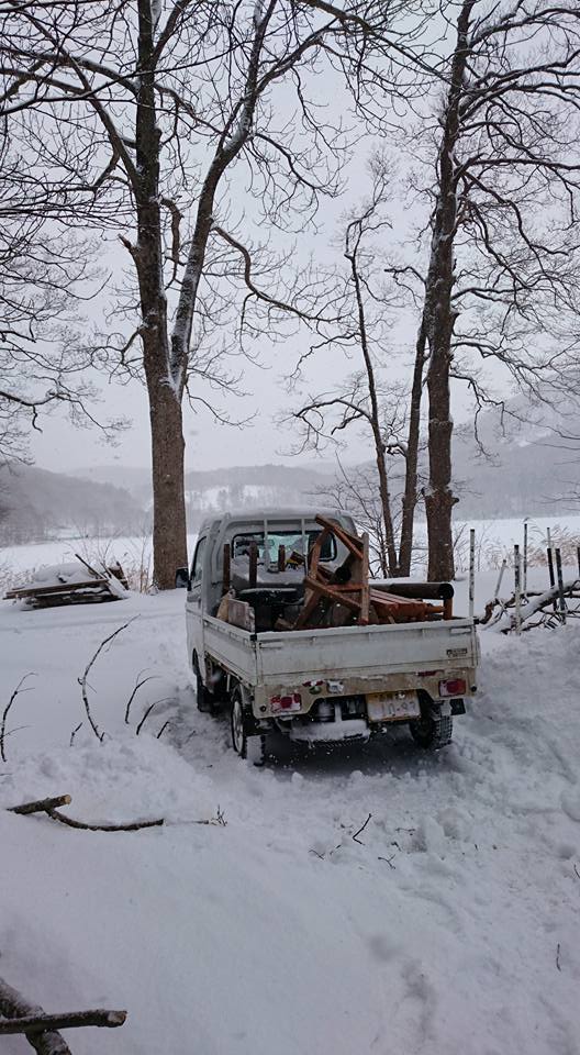 写真は営業開始に向け、ハウスに荷物搬入しているところ。