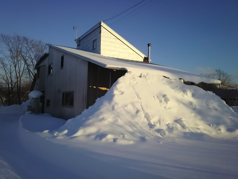 ずんずん積もって、屋根から落ちた雪がどんどん落ちて、がんがん連なって。