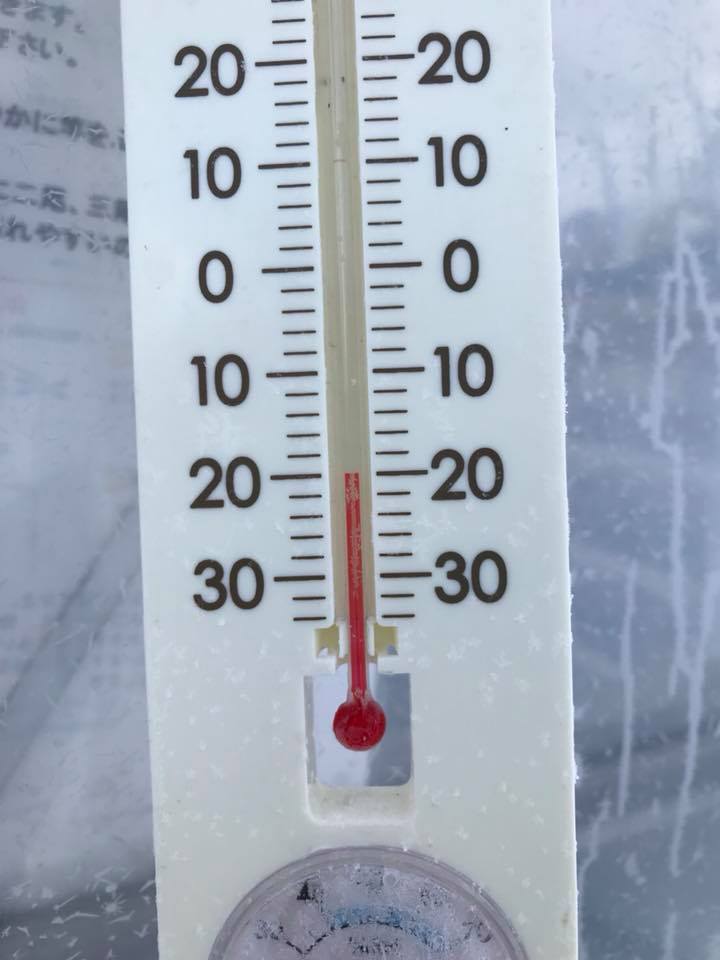 今朝はすごく冷え込みましたね〜!受付ハウス前の温度計はマイナス20度!ほぼ家庭用冷凍庫です(T . T)
