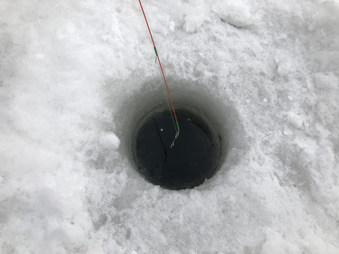 沼が凍っている今の時期だけ楽しめるワカサギ釣り、