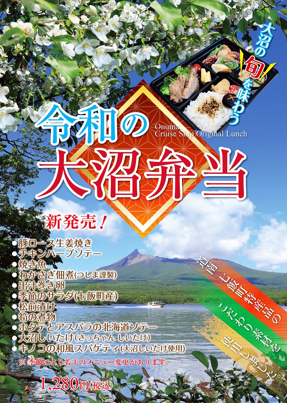 道南・七飯町特産品のこだわり素材を使用したお弁当が4月27日より、遊覧船やモーターボートを運航している大沼合同遊船から発売されます!