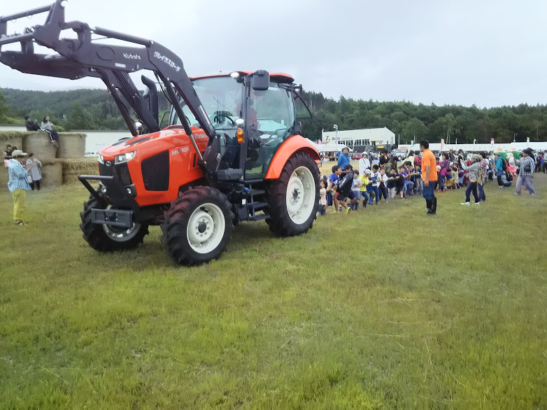 恒例となったトラクターの綱引き、トラクター試乗会の他に、去年は羊毛刈りの実演や刈った干し草を集め、牧草ロールになるまでの一連の作業の実演もあり、数種類のトラクターが目の前でかっこいぐ作業を進めていく様子に子供だけでなく大人まで「おぉ~」「へぇ~」と感嘆の声が上がっていました。