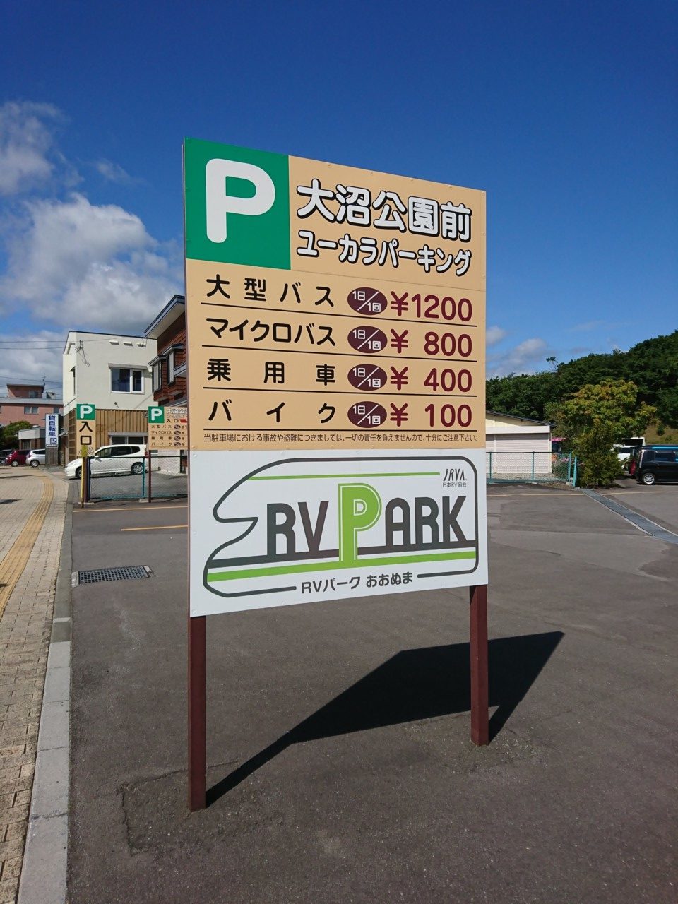 大沼公園広場の大駐車場・ユーカラパーキングの中に、「RVパークおおぬま」がオープンしました!