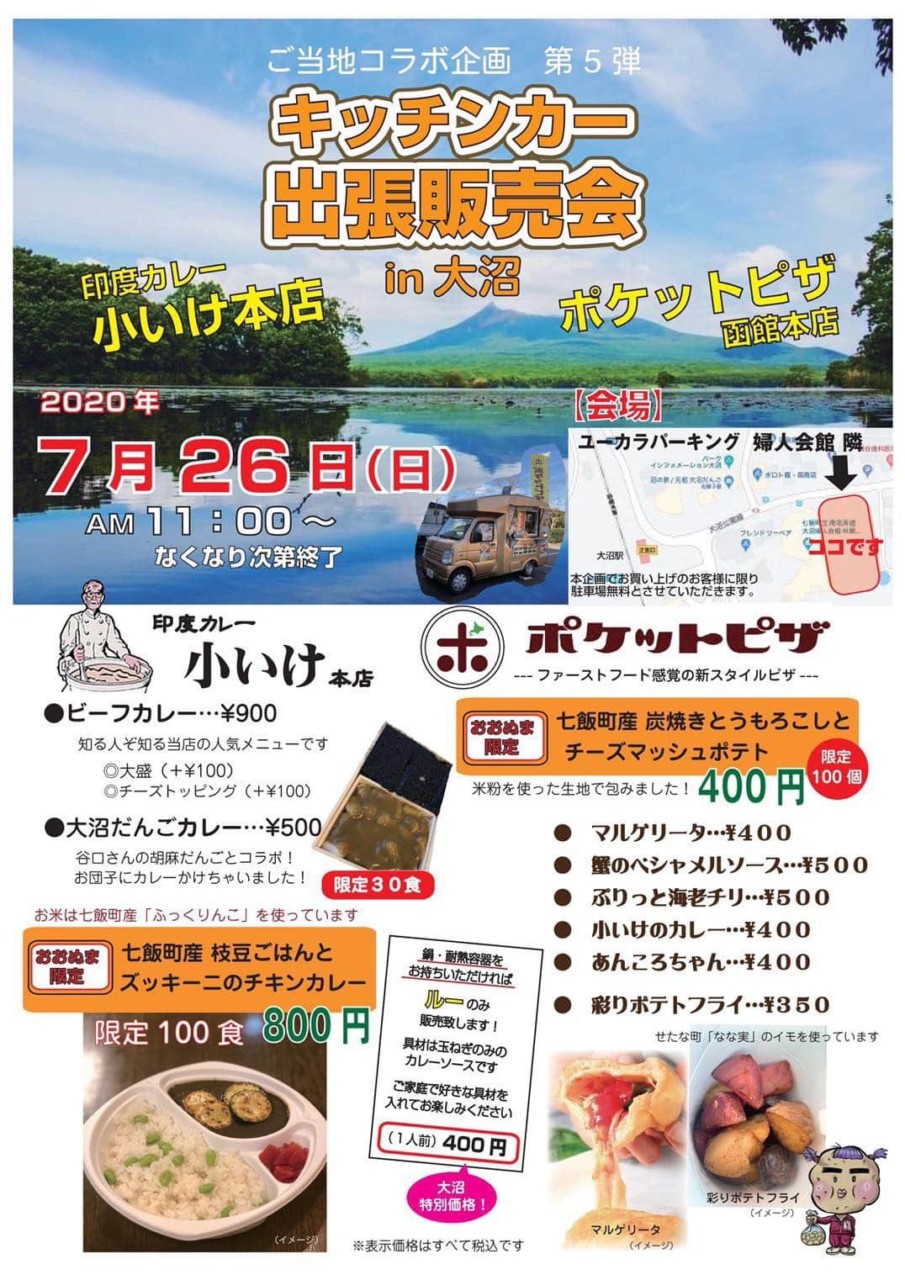 印度カレー「小いけ本店」キッチンカーが大沼公園にやって来ます!【ユーカラパーキング (株)Nabeya】