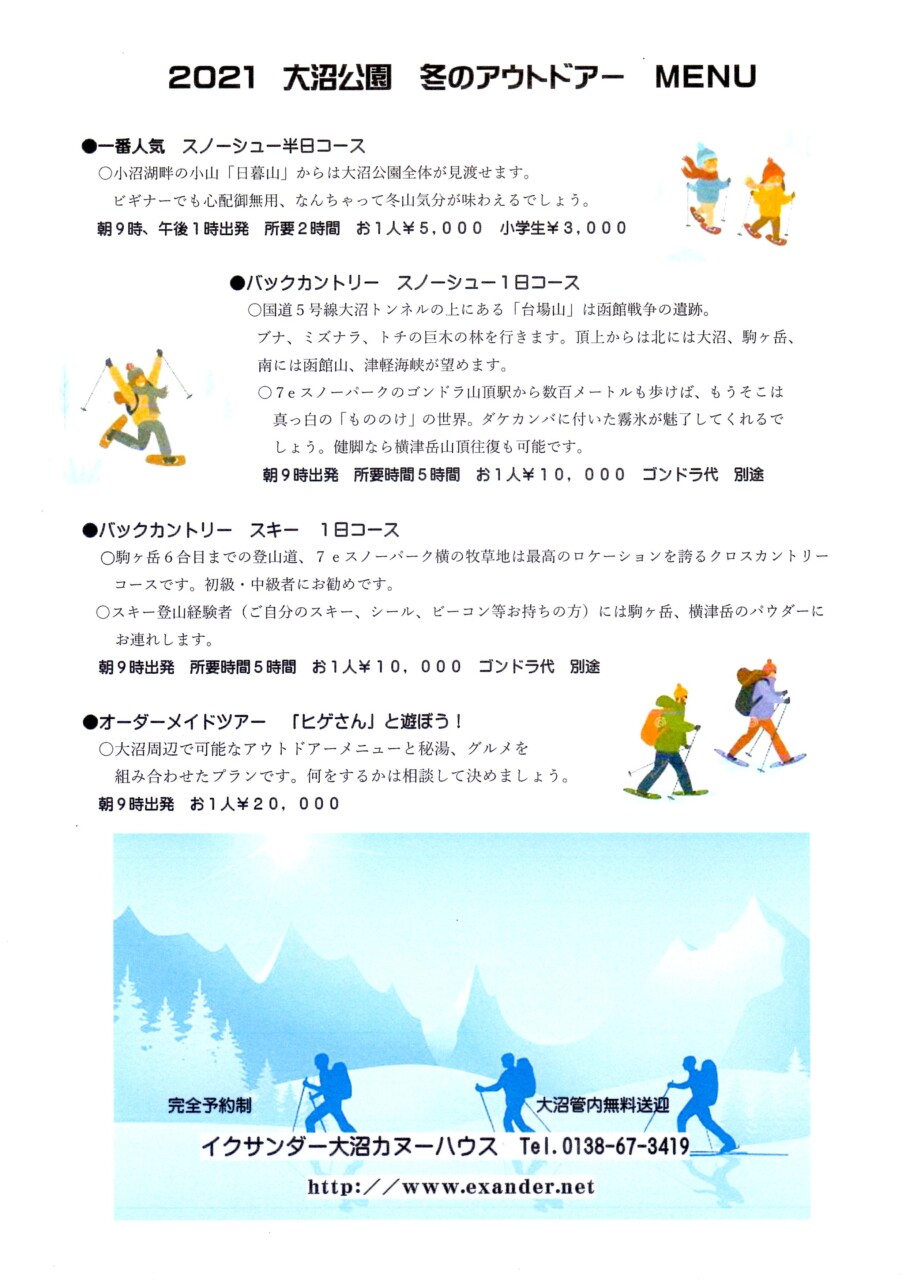 「スノーシューツアー」「バックカントリースキー」などを受付中。