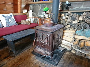 店内は薪ストーブが焚かれ、素敵なリースがお出迎え。