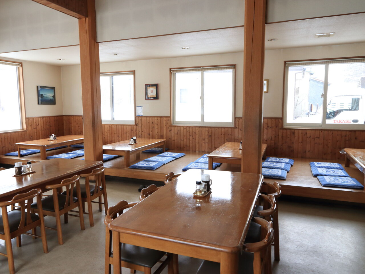 店内は小上がりからテーブル席まであり、バリアフリー設計のトイレやお店入口へのスロープなども完備。メニューもボリューム満点のものからおじいちゃんおばあちゃんにちょうどいい量のもの、お孫さんも喜ぶスパゲティなど、3世代が一緒に楽しめるレストランです。駐車場も広くて停めやすんです。(←これけっこう大事!だって一人一台ですもん(#^^#))
