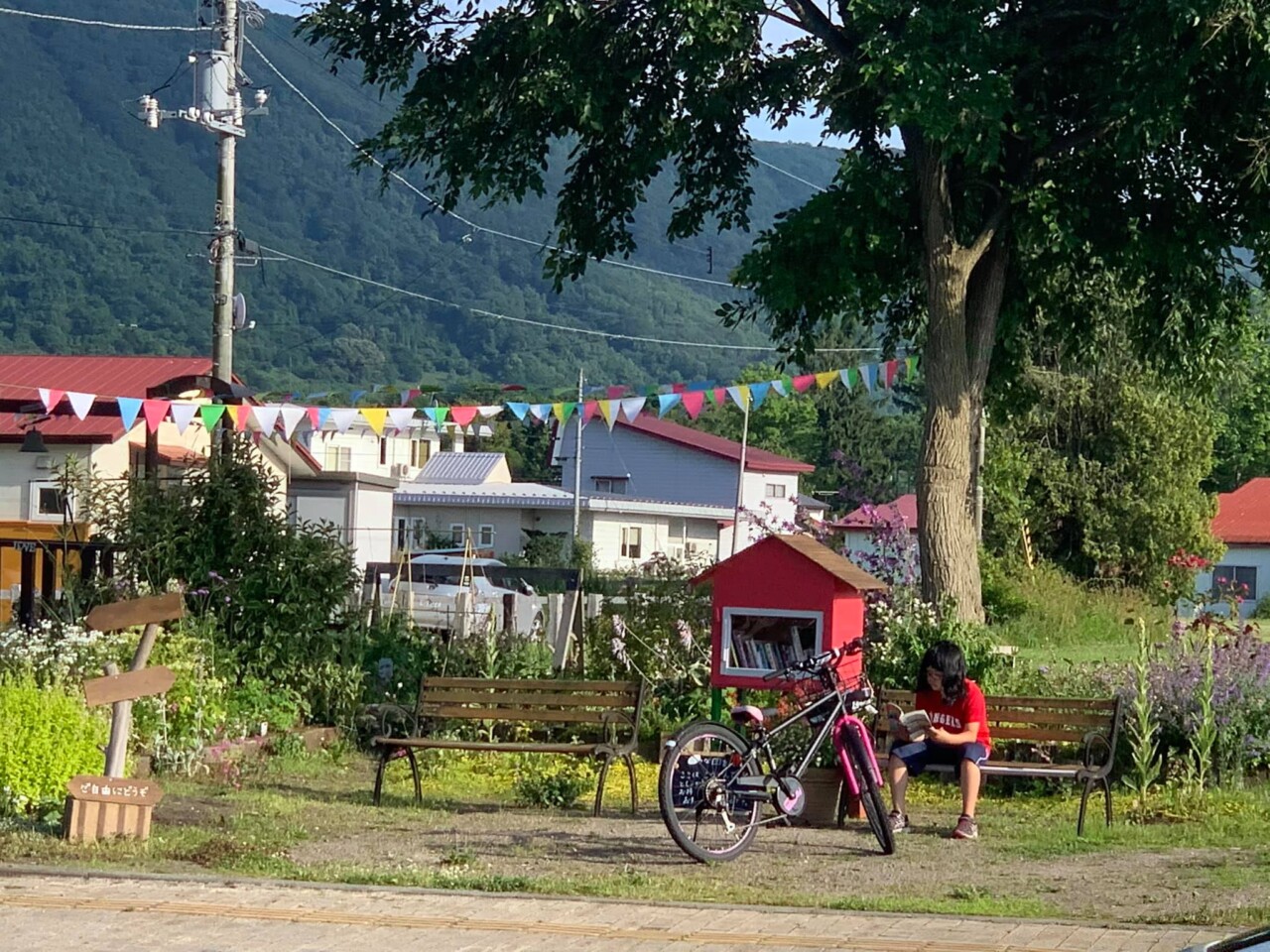 ユーカラパーキングの小さなお庭に、昨年から設置された小さな図書館