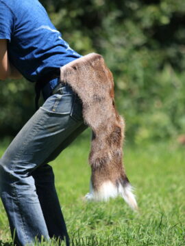 大沼にある若松毛皮では、このようにオーダーメイドでのご注文も承たまわっているのですが、実はけっこうコアなオーダーも入るそうで、この前はこちらの商品よりもっとも~っと長い、肩から足までのロング尻当て(もはや尻当てとは言えないかも 笑)も作ったそうです。写真の商品は冬の鹿皮ですが、クマ皮や他の動物の皮でももちろん作ることはできるそうですよ。