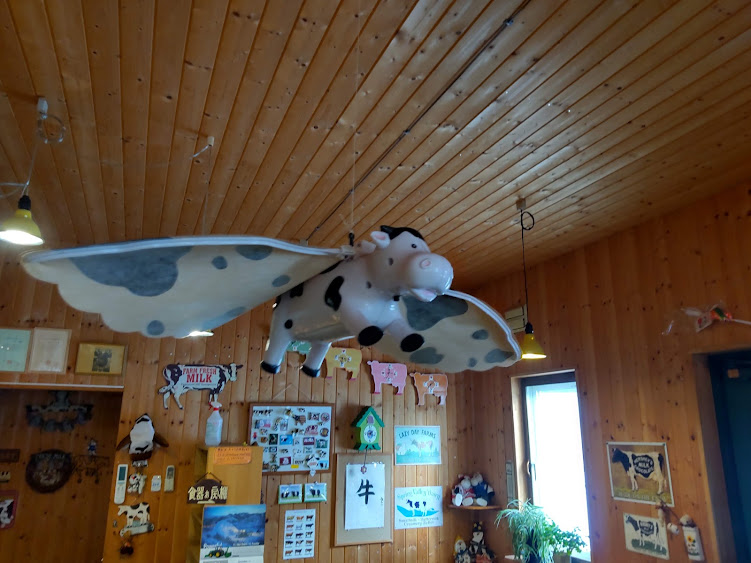 店内は、モーモーグッズがお出迎え。私のお気に入りは、この空飛ぶ牛ちゃん💛