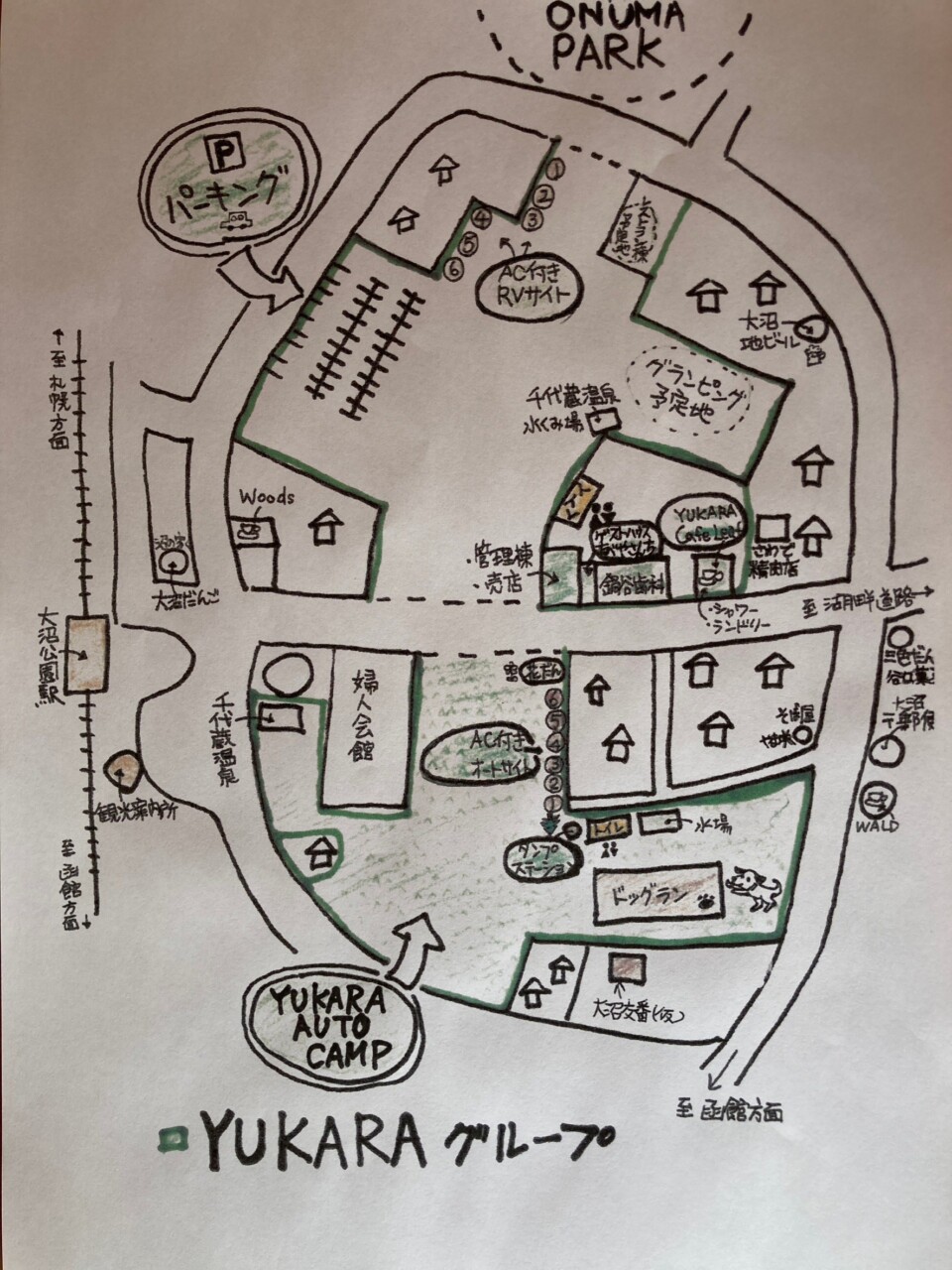 | アクセス | 第一駐車場:大沼公園広場が目の前のハード駐車場です 「RVパークおおぬま」の受付も行っております 第二駐車場:大沼郵便局の向かいの芝生駐車場です 「ユーカラオートキャンプ」のフリーサイトはこちらの広大な敷地です |